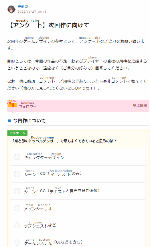 顺带一提现在CI-EN正在进行的问卷调查有严重剧透,没打完的建议不要访问
