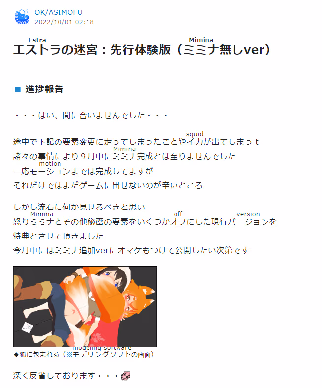 靠一个gif就传遍大江南北,其实根本作品八字连半个撇都还没有的,伟大的エストラの迷宮的作者ASIMOFU在上个月诈尸放了一个先行体验版