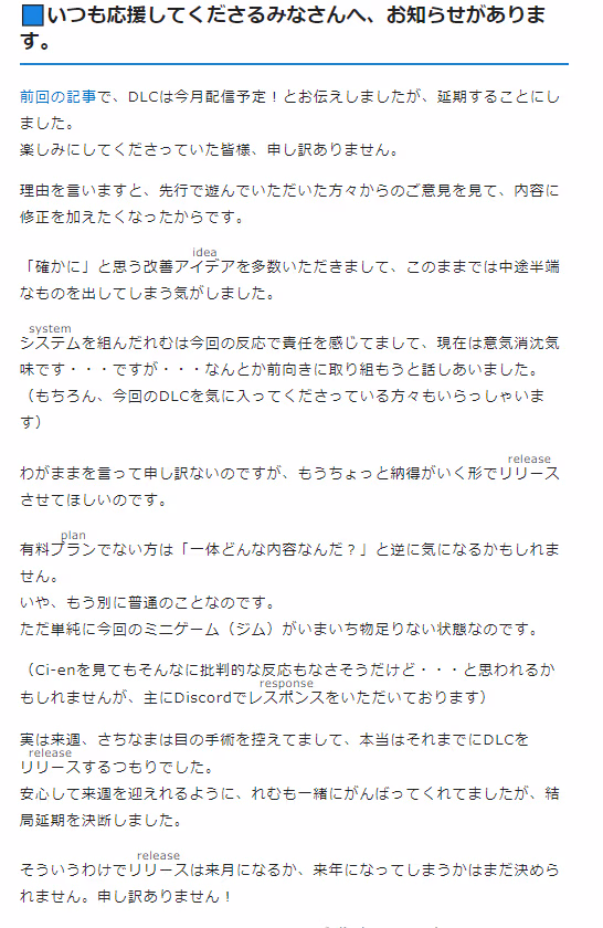 Girls的作者desu没有被工作、胃镜等诸多困难打倒,仍在缓慢的开发着他的新作!泪目了......