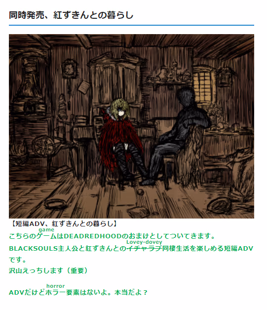 同时宣布在发售死小红帽的同时附赠短篇ADV,描写格林和小红帽的lovelove同居生活,有很多H(重要)