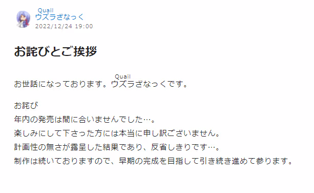 39.伟大的苍蓝星作者しもばしら工房恢复契约纹正常更新速度......但宣布因为HCG的原因要延期发售