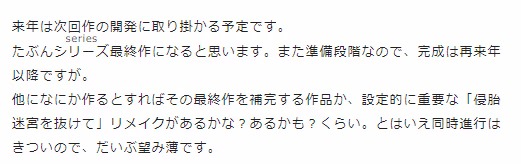 目前预订是做一个和前作同程度的作品,预计年末完成