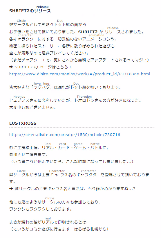 本月没怎么动,基本就是在更新新作淫習のカクリヨ村~メスバレ厳禁モラトリアム~的补丁修复BUG淫习村的评价大家应该在各种地方都有听到过,就不用我多提了()