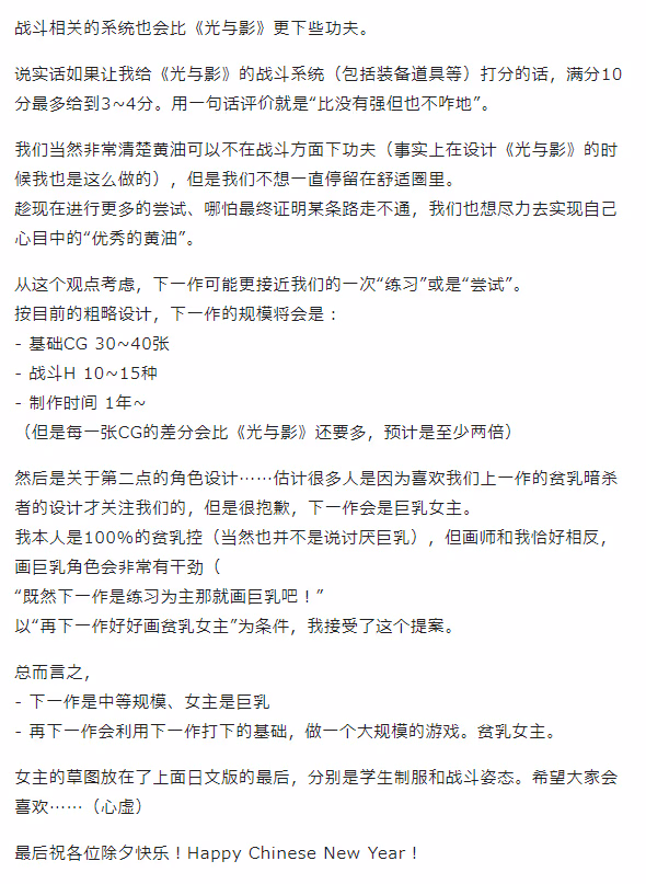 同时继续构思二月份需要完成的内容,还要再放新的CG集和新的RPG的饼——他是真的很能写,太能写了