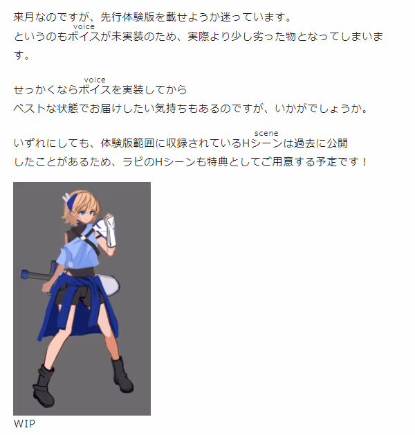 的锐意新作正在稳步开发......虽然这么说但是他还是稍微宣传了一下并在支援里放了0.9版本体验版,剩下的全都是宣传了
