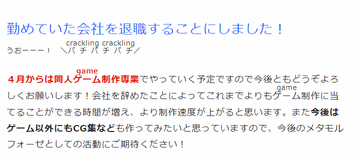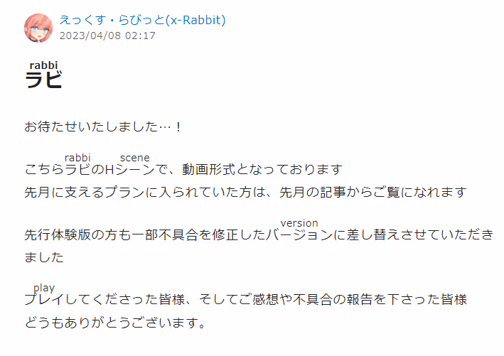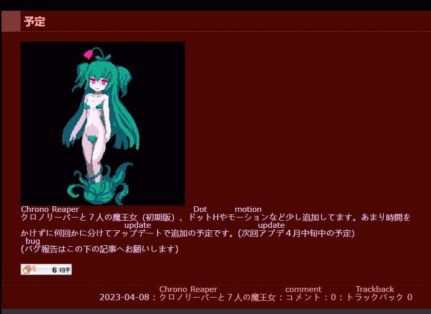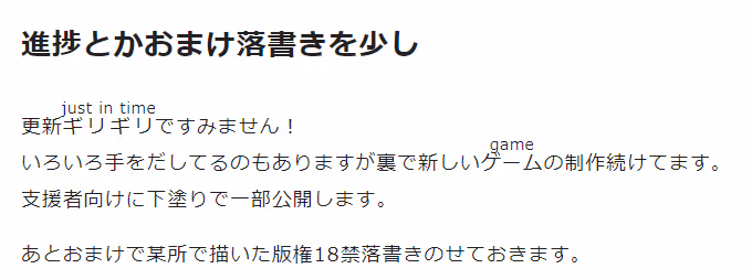 上架游戏后cien又更新了一篇,预订三个月后开始实装steam版和多语言版 同时预订完全重置以前的老游戏,不过上架后还有不少BUG 比如和以前的存档重叠导致不可预估的BUG等等......但是作者全都发在推特修了——给我好好发cien啊!