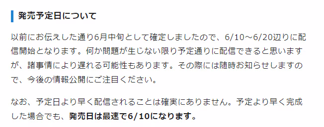 最快的情况六月十号就能玩到了