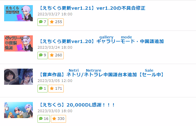 同时他为了参加HENTAI EXPO 2023正在努力肝出一个30秒的宣传PV 月报人看了一眼这玩意,眼熟的作者不少,也有很多欧美相关的,有兴趣的观众可以自行关注一下