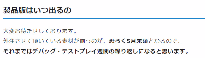 宣传PV也已经完成,只待试玩版完成就可以开始宣传了,预计四月底左右放出